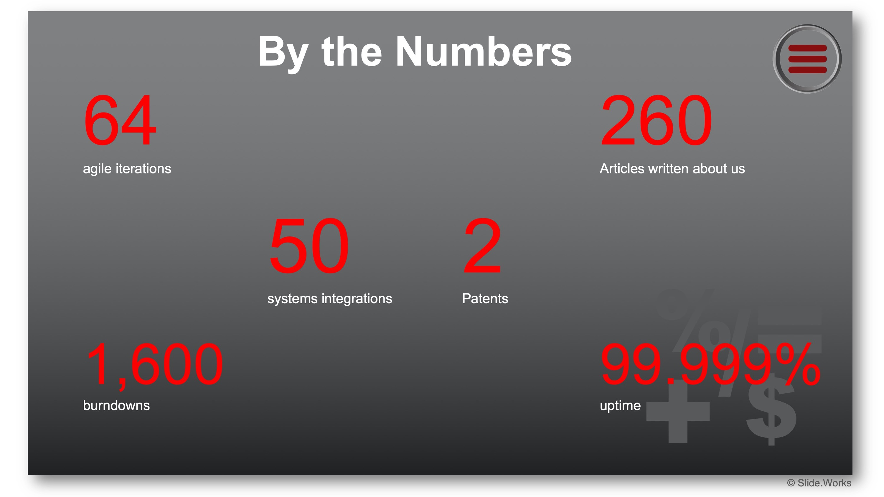 The slides tell a story that a financial audience can understand without getting bogged down in technical details.